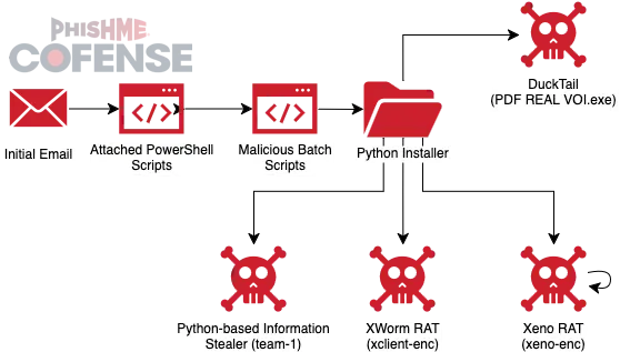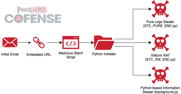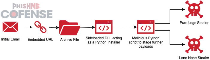 حلل خبراء Cofense حملتين رئيسيتين للبرمجيات التي توزعها المجموعة: Pure Logs Stealer وحامل جديد للمعلومات أطلق عليه Lone None Stealer والمعروف أيضاً باسم PXA Stealer. هذه الحمولات مخصصة لسرقة بيانات حساسة من الأجهزة المصابة، بما في ذلك بيانات اعتماد وتضمينات متصفحات وملفات تعريف المستخدمين.